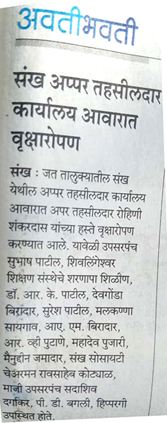अधिक माहितीसाठी इथे क्लिक करा"एक पेड़ माँ के नाम" या प्रेरणादायी उपक्रमांतर्गत जत तालुक्यातील माडग्याळ येथे महसूल विभागाच्यावतीने वृक्षारोपण करण्यात आले. या उपक्रमात अधिकारी व कर्मचाऱ्यांनी आपापल्या मातांचे स्मरण करत वृक्षारोपण केले. पर्यावरण रक्षणाबरोबरच मातृप्रेमाचा सन्मान करणारा हा उपक्रम उपस्थितांना भावविवश करणारा ठरला.