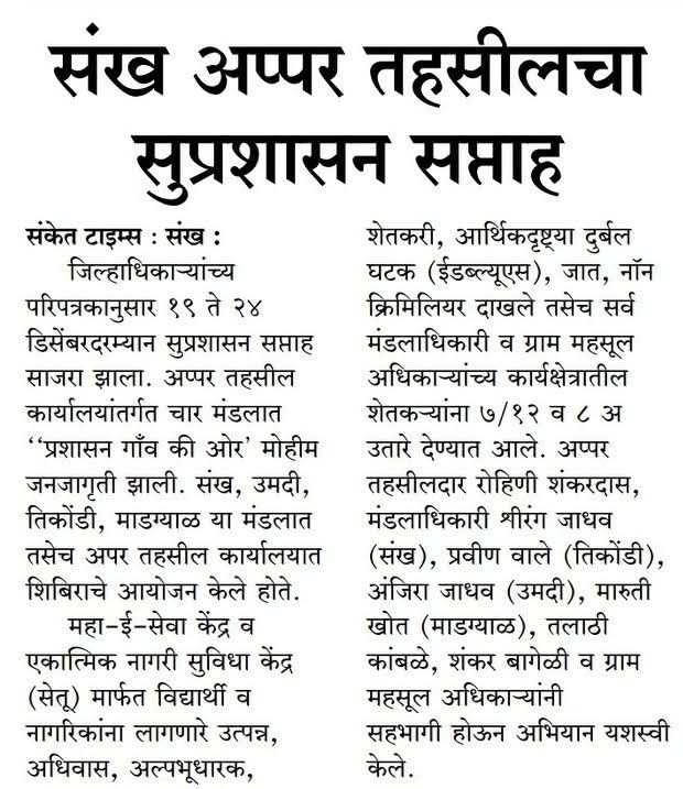अधिक माहितीसाठी इथे क्लिक करासंख अपर तहसिलदार कार्यालयामार्फत तिकोंडी येथे छत्रपती शिवाजी महाराज महाराजस्व अभियान यशस्वीपणे घेण्यात आले.