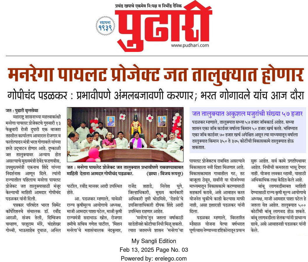 अधिक माहितीसाठी इथे क्लिक करा"एक पेड़ माँ के नाम" या प्रेरणादायी उपक्रमांतर्गत जत तालुक्यातील माडग्याळ येथे महसूल विभागाच्यावतीने वृक्षारोपण करण्यात आले. या उपक्रमात अधिकारी व कर्मचाऱ्यांनी आपापल्या मातांचे स्मरण करत वृक्षारोपण केले. पर्यावरण रक्षणाबरोबरच मातृप्रेमाचा सन्मान करणारा हा उपक्रम उपस्थितांना भावविवश करणारा ठरला.